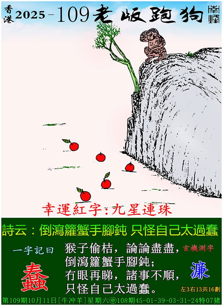109期老版跑狗一字記之曰:【蠢】 玄機測字:《濂》